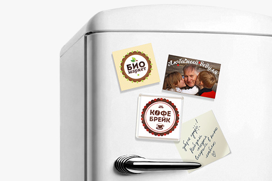- Бизнес-сувениры. Магниты с фото на заказ с логотипом компании и полезной информацией (календарь, телефоны служб) годами висят у клиентов, постоянно напоминая о вашем бренде.