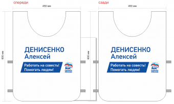 Промо-жилет с нанесением полноцветного логотипа с двух сторон методом сублимационной печати. В стоимость входит сам жилет и двухсторонняя персонализация формата А3 (285х400мм) по Вашему макету.