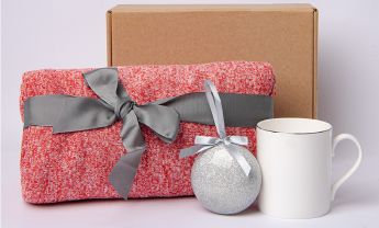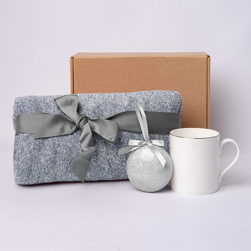 Подарочный набор HOLIDAY: плед, кружка, шар новогодний, коробка; синий
