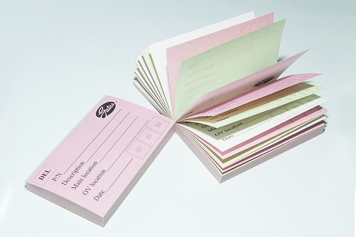 - Плотность бумаги: мы используем самокопирующуюся бумагу Giroform либо Reacto, плотность: верхний слой — 56 г/м2, средний слой — 53 г/м2, нижний слой — 57 г/м2.